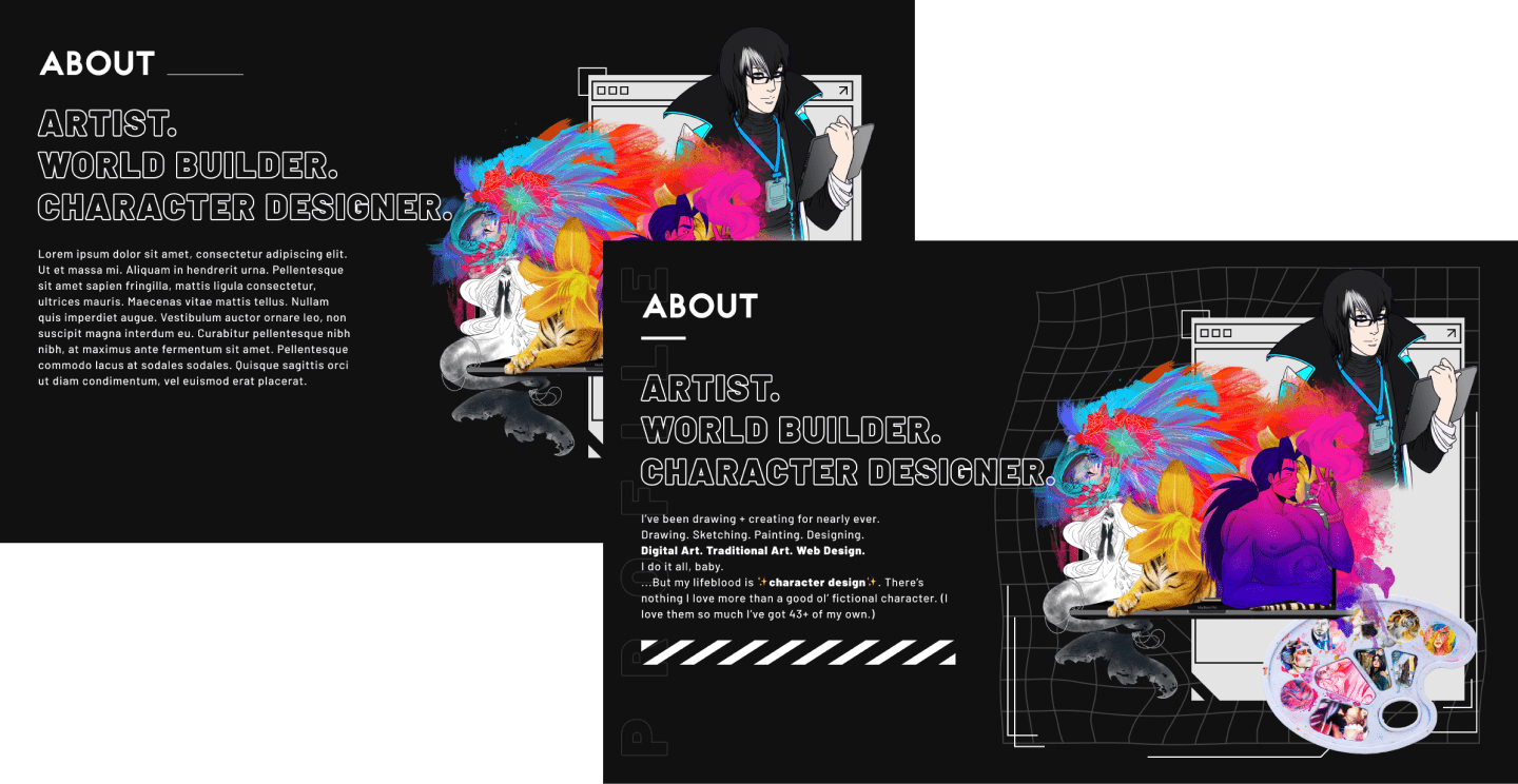 The last time I updated c0deysseus.com was three years ago (2020). I've grown as a person, an artist, a creative, and a web designer/developer. Basically, I'm not who I used to be. đââď¸đŞ In an effort to eventually stream on Twitch, I began rebranding my identity as C0DEYSSEUS (complete with an upgrade from all lowercase to all uppercase stylization). What followed is what I'm slowly implementing across the c0deysseus.com website. Look'it you, getting a top-secret, insider look!
